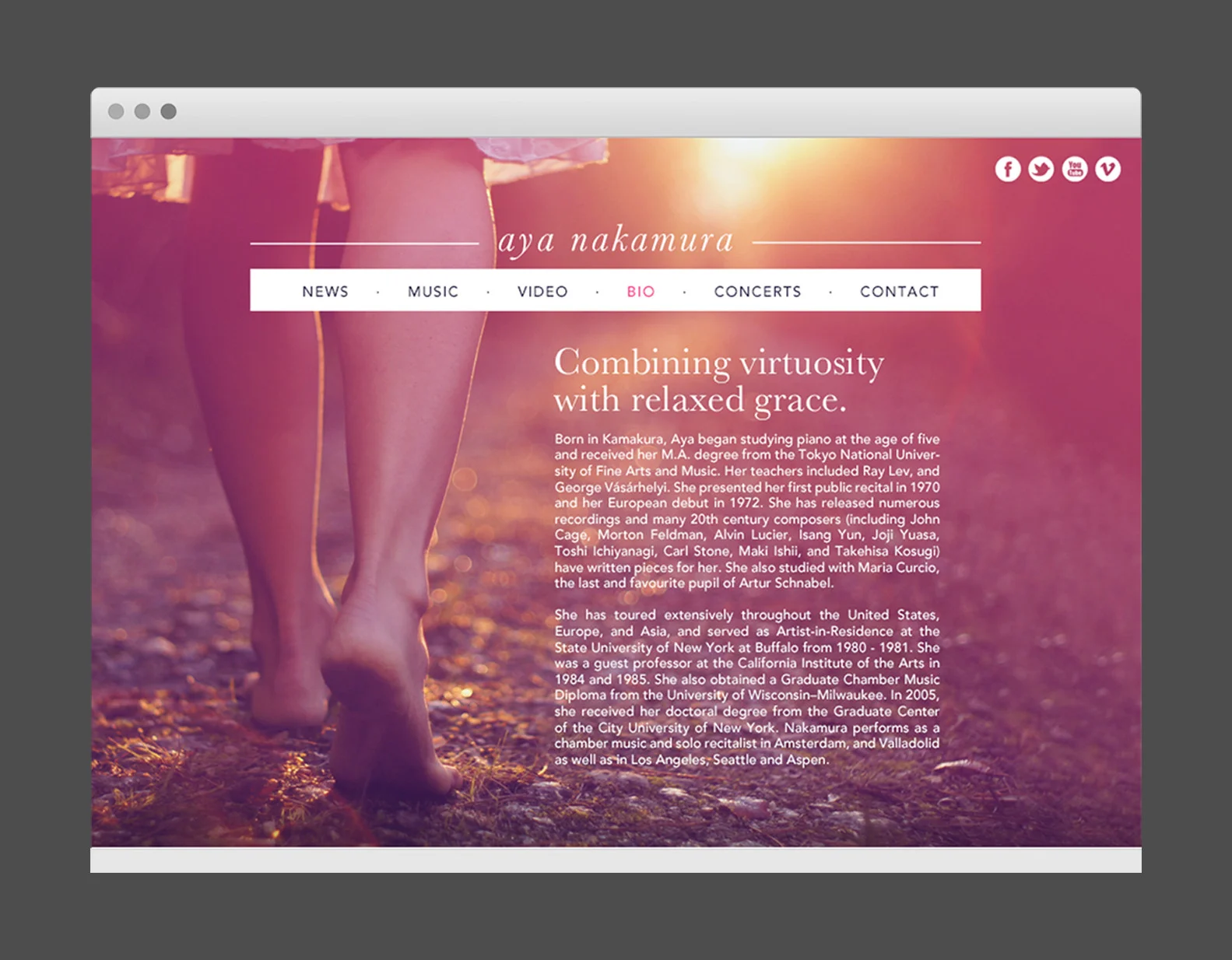 Role: Designer of the proposed website design for the classically trained musician's website. Designs include landing page, bio, news, media and contact pages.