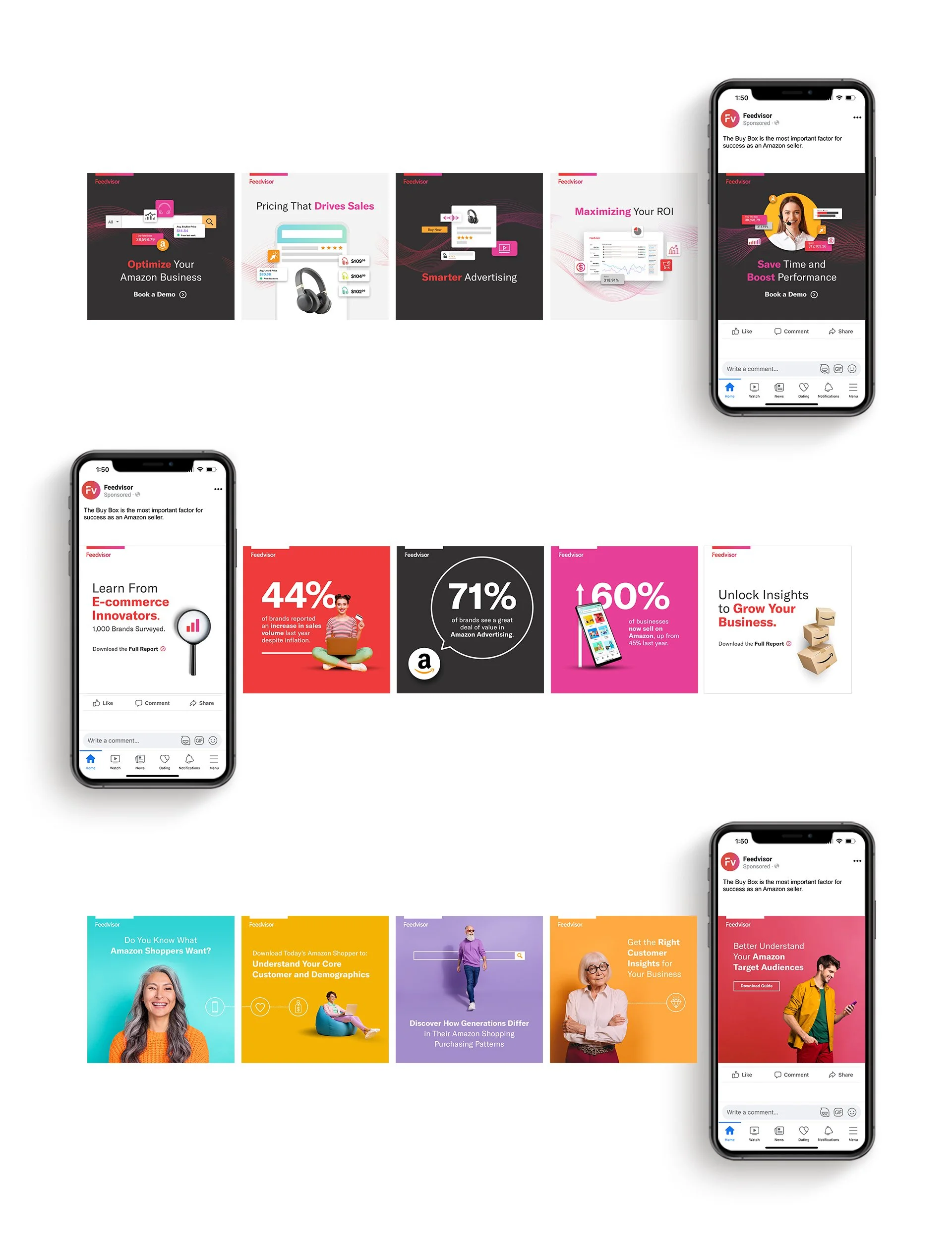 Role: Conceptualized and designed marketing collateral, reports, infographics, social and PPC ads, emails, and short-form videos creating clear, compelling visuals that strengthened brand presence and engagement.